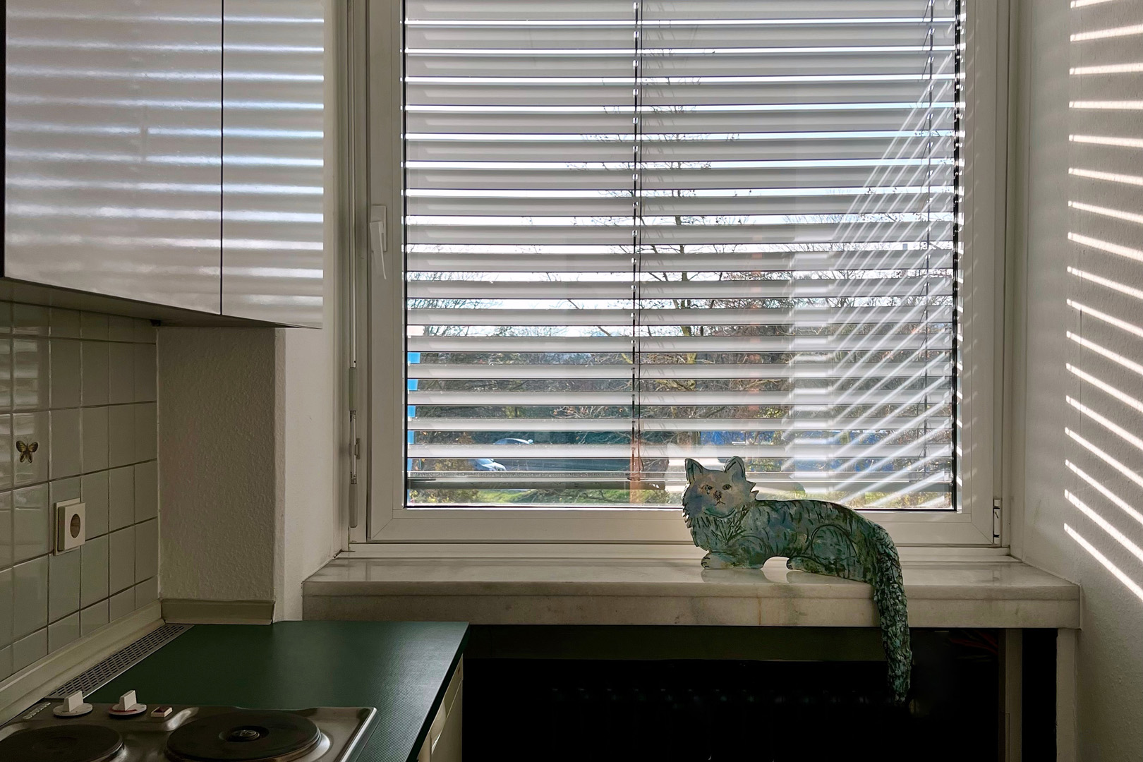 The schnauzer looks out of the window at the concrete façade, dreaming of Arcadian climes. He thinks of the cat with the red fur from his last vacation in Greece (Irene, 2021), and of Hermann (2023), the cat with the moustache. The thought irritates and excites him in equal measure. He shakes himself. Just as he is nervously searching in his briefcase for the matches to light a cigarette, the door to the anteroom opens and a spitz sticks its snout through the crack in the door. "The boss is expecting you."